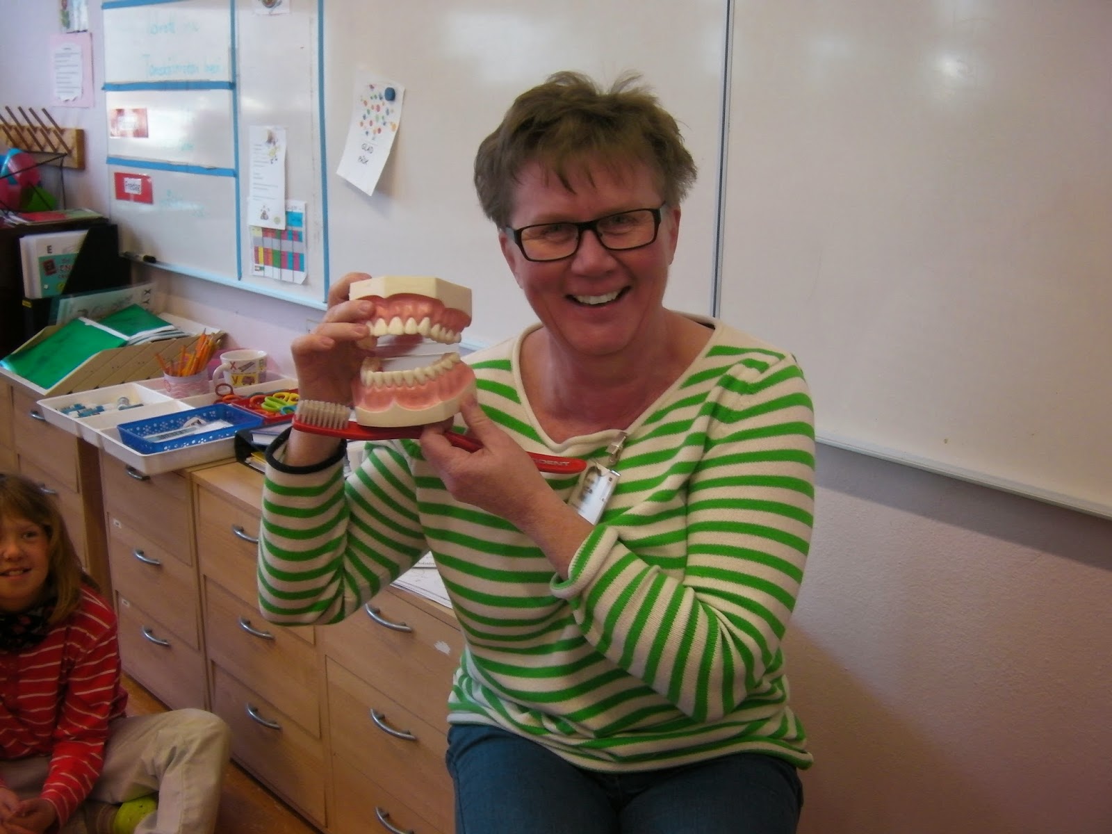 Tandsköterskor på besök Ingelöv och Mona berättade om våra tänder och vi i 1-2:an fick en varsin tandborste av dem. Tack för att ni kom!